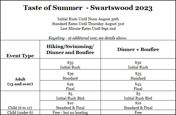 Last Taste of Summer Swim/Hike/Kayak/Dinner & Campfire at Swartswood Lake State Park!! Sunday, August 18, 2024 In Newton, NJ RSVP Form and Pricing at the Bottom INITIAL RUSH DEADLINE MIDNIGHT SUNDAY, August 11, EARLY BIRD DEADLINE Midnight WEDNESDAY, August 14 EVENT RSVP DEADLINE Midnight SATURDAY, August 17 Spend the day at Swartswood Lake State Park, with hiking, boating, relaxing and dinner, then end the day with a campfire! Swartswood Lake: 75 minutes from Manhattan - one of the prettiest lakes in the NY area and the 3rd largest lake in NJ. Hikes: Longer for adults - 3 to 4 hrs, 4 + miles Shorter for everyone - 1+ hr , 1.5 to 2 miles — this can be combined with the boating Kayaking*: Boat on a 500 acre glacial lake - this can be combined with the short hike . For kayaking children must be at least 12 to have their own kayak. Limited number of boats available, there is also potentially a double kayak option available. Let us know your interest on the form. *Kayaking is at additional cost, offered directly by the park $15 per hour for a kayak and $20 per hour for a double kayak Swimming/Beach: Swim or just relax at at a lovely beach or under the shade on our portable air couch as you take in the last breaths of summer Dinner: We will end the day events with a kosher Chinese buffet dinner with a variety of choices for meat eaters and vegetarians, from Tokyo Hibatchi, under the Vaad Harabonim of MetroWest, located in Springfield NJ. Campfire: Marshmallows, Smores, Glow Sticks, music and stories! This will run till about 8ish… Camping: If you have your own transportation, have all your own equipment and food and wish to camp out on Sunday night, select the option on the form and I will be in touch about details—you need to supply everything you need and leave by noon the next day, but you can camp for free at the site if there is space available…. + Frisbee, Soccer, Kites, Stomp Rockets & more... Tentative Schedule* 12:00 Arrival/Sign in 12:30 - 4:00 Longer Hike 12:30 - 4:00 Kayaking* ( at additional cost) 1:30 Shorter Hike 4:30/5:00 Dinner followed by Mincha 6:30 Campfire till ??? *Subject to change For more details, directions and FAQs, visit our Details and FAQ Page PRICING The balance of any monies you might owe is due at the event. When you arrive you will need to go through registration in order to complete any payments for the event. Time of registration – calculated from when we receive your reservation on the RSVP Form. ADVANCE PAYMENT REQUIREMENT TO RSVP: In order to complete your reservation, you must pay for the event in advance either via check (postmarked by the deadline) or via paypal by the deadline at the top of this page. Failure to pay may result in your being unable to attend the event. PAYMENT METHODS - CHECK OR PAYPAL You may pay in one of two ways, via check or via paypal. Via Check: There will instructions on the form below, once selected. In order to complete your registration, you need to have your payment postmarked no later than THURSDAY, AUGUST 31st, 2023. Failure to do so may mean you will not be able to attend the event. Via Paypal When you complete the RSVP form below by selecting your activities, you will be directed to a paypal page and will be asked to log in and pay at PayPal’s site. Once you complete the RSVP form and pay via paypal, you will be considered fully registered. COSTS We require payment in advance, either via check or via paypal. Any balance of any monies you owe is due at the event. Please bring cash or checks (preferable) made out to “David Davetrek LLC”. When you arrive you will need to go through registration and complete any payments for the event. Time of registration – calculated from when we receive your reservation on the RSVP Form. You may cancel until Wednesday 8/30. Afterwards, you may either substitute a friend for your spot, upon our approval. NO refunds or credits after Wednesday 8/30/23. EVENT RSVP DEADLINE Midnight SATURDAY, September 2, 2023 |